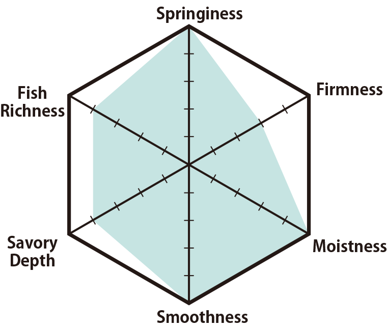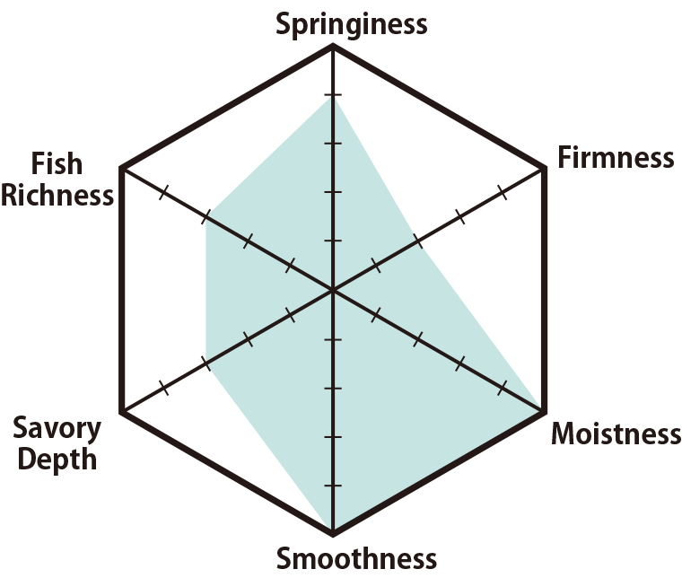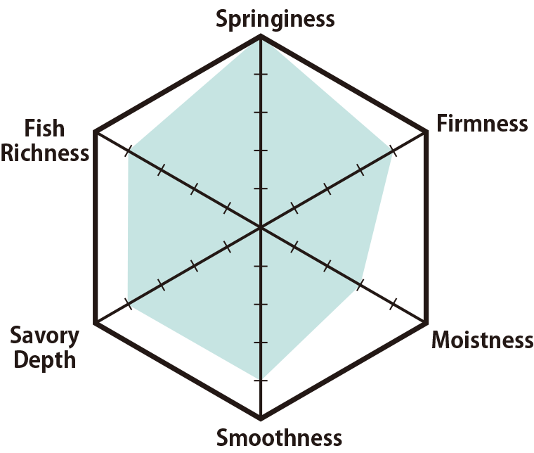 This exquisite fish cake features a supple, firm texture with a satisfying bite. Its flavor has remained unchanged since the shop's founding in 1935. Crafted with premium honjozo soy sauce from Tome, Miyagi, and local sake, it highlights the natural aroma and savory umami of the fish. Special care is taken to minimize any fishy scent, making it enjoyable even for those who typically avoid seafood. In 2020, it received the prestigious Minister of Agriculture, Forestry and Fisheries Award at the National Processed Marine Food Exhibition.